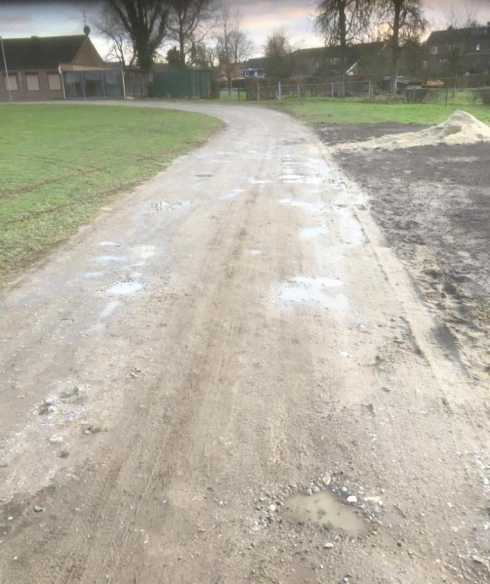 De inwoners van Ingber hebben slechts een voorziening, waar de hele gemeenschap gebruik van moet maken. De gemeenschapsvoorziening van Ingber en tevens de voetbalkantine. Uit diverse signalen en een bezoek ter plaatse is ons gebleken dat de toegangsweg hiernaartoe in slechte staat is, een puinhoop. Een deel van de toegangsweg (c.a. 50 meter) is verhard en het overige gedeelte is onverhard met veel kuilen en plassen (zie foto’s).